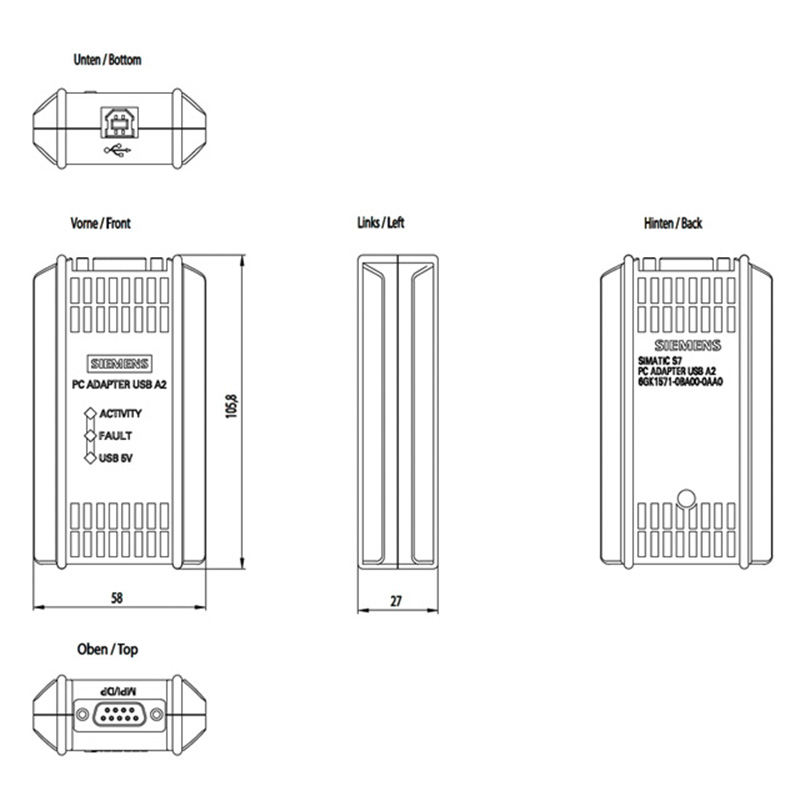 | Описание продукт | PC Адаптер USB A2 USB-адаптер (USB V2.0) для подключения PG/PC или ноутбука к SIMATIC S7 через PROFIBUS или MPI, включает 5-метровый USB-кабель, можно использовать с 0,3-метровым MPI-кабелем, операционные системы Windows XP/Vista/ Windows 7 32/64 бит и выше |